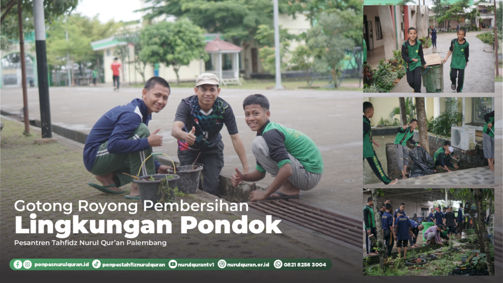 Dalam rangka menjaga kebersihan, kerapihan, dan kenyamanan lingkungan pesantren, Pondok Pesantren Tahfidz Nurul Qur’an melaksanakan kegiatan bersih-bersih dan gotong royong bersama seluruh santri dan asatidz menjelang libur panjang akhir semester gazal. Kegiatan ini dilaksanakan sebagai bentuk tanggung jawab bersama dalam merawat fasilitas pondok serta menanamkan nilai kedisiplinan dan kepedulian terhadap lingkungan.